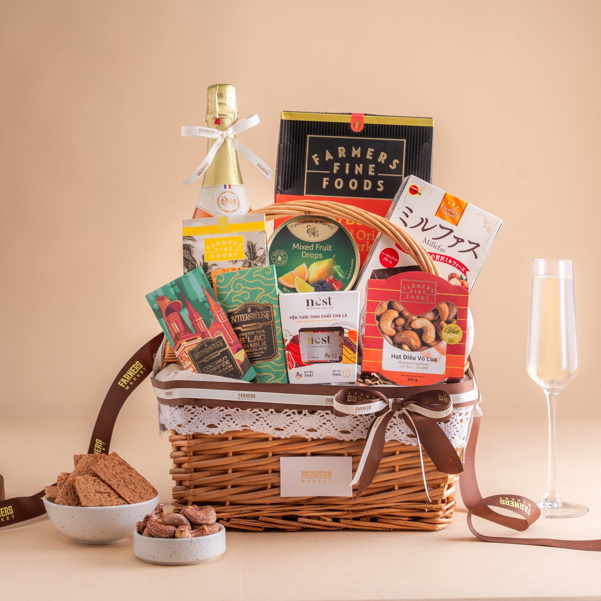- Giỏ Quà Yến Tươi - Nước Trái Cây Và Hạt Tone Nâu Tinh Tế