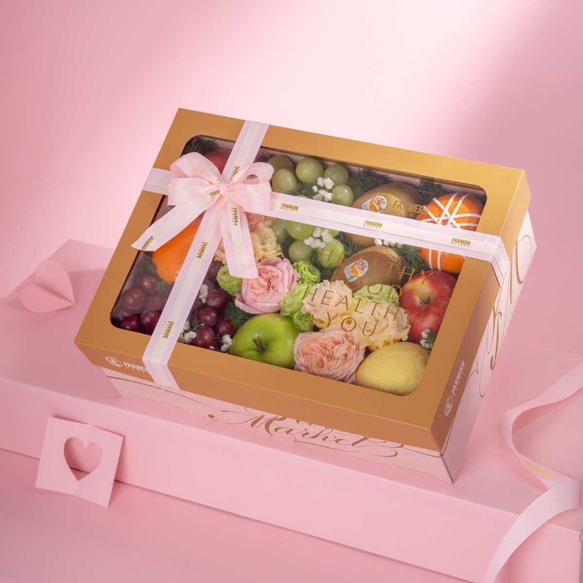- Khay hộp quà hồng họa tiết vàng Farmers Market (34x25x10.8) |